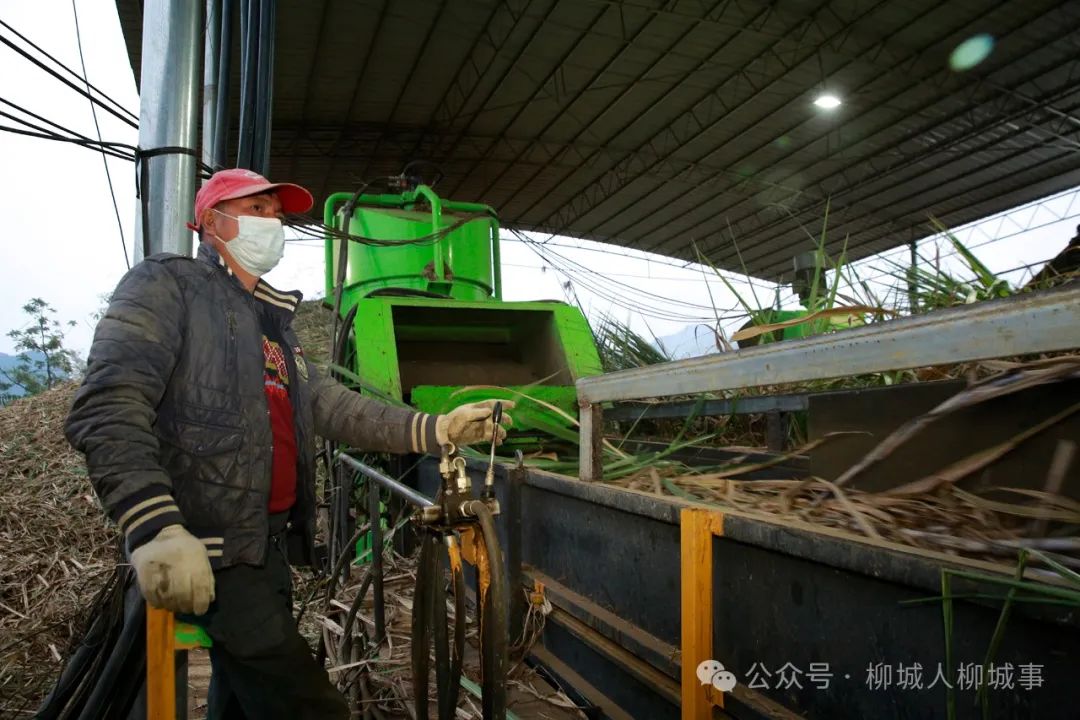 眼下正值甘蔗砍收的忙碌時(shí)節(jié)。12月12日傍晚,柳城縣社沖鄉(xiāng)倉(cāng)貝村家庭農(nóng)場(chǎng)甘蔗分步式機(jī)收除雜服務(wù)點(diǎn),1臺(tái)甘蔗分步式機(jī)收設(shè)備開足了馬力運(yùn)轉(zhuǎn)作業(yè)。剝?nèi)~、切段、裝載等工序無(wú)縫配合,一輛輛滿載甘蔗的車輛從蔗地里陸續(xù)運(yùn)往此處,開始它們的“凈化之旅”。